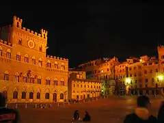 В новейшее время основное строительство велось в Сиене за пределами средневековых стен города. Благодаря этому в Сиене лучше, чем в других крупных центрах Тосканы, сохранился средневековый город с узкими вьющимися улочками, застроенными старинными палаццо. Средоточием жизни Сиенской республики служила обширная Пьяцца дель Кампо — площадь в форме раковины. Дважды в год на площади разыгрывается красочное средневековое представление — Палио.