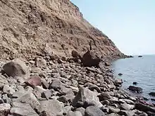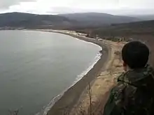![]() Береговая линия бухты Сизиман. На заднем плане мыс Нитуси | |