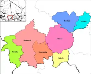 - Административный центр — город Сикасо; другие города — Кутиала, Бугуни.