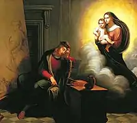 В 1754 году алтарный образ Рафаэля был заменён копией работы неизвестного художника (традиционно приписывается Джузеппе Ногари). Копия идентична оригиналу по размерам, но несколько меньше по высоте, поскольку верхняя часть картины (с изображением штанги для занавеси) была загнута за раму и скрыта[6].