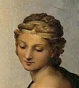 Это высказывание интересно сравнить с описанием, сделанным И. И. Винкельманом в 1755 году: «Посмотрите на Мадонну с лицом, полным невинности и в месте с тем более чем женственного величия, в блаженно покойном положении, с тем спокойствием, которое царило в изображениях богов у древних»[15].