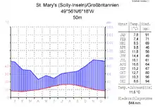 | Источник: St Mary's Heliport Climatic Averages 1981-2010 | |||||||||||||