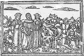 ![]() Маттео Сильватико со своими учениками, гравюра на фронтисписе « Opus Pandectarum Medicinae» издания 1526 года | |