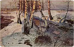 В дореволюционные годы картина "Начало весны" печаталась на открытках[22][23].