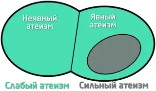 | справа | Явные сильные атеисты считают, что утверждение «по крайней мере один бог существует» является ложным. | |