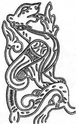 ![]() По Рыбакову — изображение Симаргла (браслет XII—XIII вв.) | |
