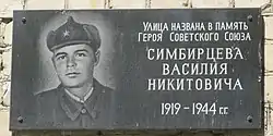 Симбирцев Василий Никитович (3 августа 1919, Саратов — 24 января 1944, Кривой Рог, Днепропетровская область) — помощник командира взвода разведки 282-го гвардейского стрелкового полка 92 гв.сд, гвардии старший сержант, Герой Советского Союза.