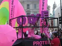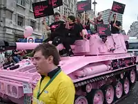 | Розовый танк в Лондоне | Розовая подсветка гей-квартала Кастро | Платформа Международной амнистии на Европрайде |