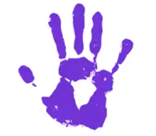 В 1970-х годах большой популярностью в качестве гей-символа пользовалось изображение отпечатка ладони фиолетового цвета («пурпурная рука»). Являющийся одной из самых активных групп освободительного движения, «Фронт освобождения геев» сделал его своей эмблемой. Данный символ обязан своим происхождением одному происшествию в Сан-Франциско, когда работники выпускавшей гомофобные материалы типографии, вылили чернила на головы протестующих рядом с ней гей-активистов, а те в свою очередь оставили следы своих ладоней на здании конторы[18][19].