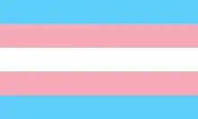 Аналогичный трансгендерный символ представляет собой совмещенные воедино «зеркало Венеры» и «копье и щит Марса», иногда к этому добавляются совмещённые стрелка и крест[1]. В 1999 году был создан трансгендерный флаг, полотно которого состоит из продольных полос голубого, розового и белого цвета. Его автор, транссексуалка Моника Хелмс объясняет, что голубые и розовые полосы символизирую мужской и женский пол соответственно, тогда как белый — другие состояния (интерсекс, трансгендерность, неопределённый гендер). Флаг призван обозначить равноценность всех гендерных форм[16][17]. При этом, на текущий момент, у многих состояний, первоначально соотнесенных с белым цветом, есть собственные флаги. Например, флаг небинарных людей, гендерквирности, агендерности. Так же, собственный флаг имеют интерсекс-люди. А само по себе явление интерсексности не всеми, в том числе, и интерсекс-людьми, признается частью ЛГБТ+ сообщества.