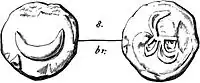 - счётные точки или штрихи (эквивалент ценности в унциях), в ряде случаев с добавлением буквы S — сокращения слова «семис» (лат. semis — половина);