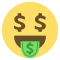 - 🤑 — «лицо с языком из денег» (англ. money-mouth face; U+1F911).