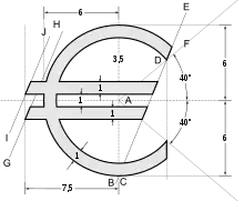 Европейская комиссия также разработала логотип евро с указанием точных пропорций и цветов переднего плана и фона[2]. Хотя некоторые дизайнеры шрифтов просто в точности скопировали логотип евро в качестве знака евро в этих шрифтах, большинство разработали свои варианты, которые часто базируются на букве С в соответствующем шрифте, чтобы знак валюты имел такую же ширину, как и арабские цифры[3].