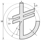 Символ «₺» представляет собой заглавную латинскую букву «L», перечеркнутую в верхней части двумя параллельными линиями, образуя буквоподобный знак, похожий на строчную латинскую букву t. Конкретное начертание зависит от шрифта, использованного для вывода символа[1][2][3].