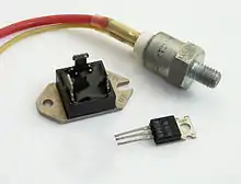 Сими́стор (симметричный триодный тиристор) или триак (от англ. TRIAC — triode for alternating current) — полупроводниковый прибор, являющийся разновидностью тиристоров и используемый для коммутации в цепях переменного тока. В электронике часто рассматривается как управляемый выключатель (ключ). В отличие от тиристора, имеющего катод и анод, основные (силовые) выводы симистора называть катодом или анодом некорректно, так как в силу структуры симистора они являются тем и другим одновременно. Однако, по способу включения относительно управляющего электрода основные выводы симистора различаются, причём имеет место их аналогия с катодом и анодом тиристора. На приведённом рисунке верхний по схеме вывод симистора называется выводом 1 или условным катодом, нижний — выводом 2 или условным анодом, вывод справа — управляющим электродом.