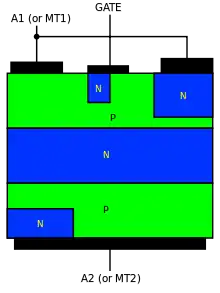 Симистор имеет пятислойную структуру полупроводника. Упрощённо симистор можно представить в виде эквивалентной схемы из двух триодных тиристоров (тринисторов), включённых встречно-параллельно. Следует, однако, заметить, что управление симистором отличается от управления двумя встречно-параллельными тринисторами.