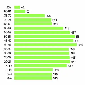 | Жителей | 2158 | 2918 | 3817 | 5089 | 6525 | 7103 | 7466 | 7154 | 6674 |