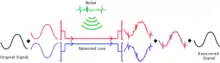При симметричном подключении соединение происходит посредством пары сигнальных проводов и одного общего провода (часто в виде экранной оплётки кабеля). В одном из сигнальных проводов передаётся оригинальный (неизмененный) сигнал, в другом — инвертированный (перевёрнутый по фазе на 180°). Из-за использования двух идентичных проводов, расположенных в непосредственной близости друг от друга, воздействие внешних факторов на сигналы происходит практически одинаково. Впоследствии за счёт инвертирования полезного сигнала, перевернутого по фазе на 180°, он становится синфазным с полезным сигналом, шедшим изначально в фазе, а сигнал помехи, попавший на оба проводника синфазным, на одном из проводников становится противофазным, и за счет этого взаимоподавляется.