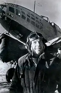 ![]() М. В. Симонов у самолёта (1942 год) | |