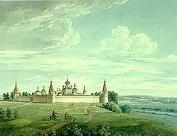 ![]() Симонов монастырь. Акварель Луи Бишбуа из альбома «Виды Москвы», 1846 год | |