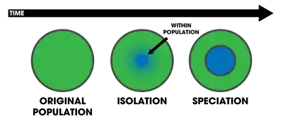 Противоположный случай — видообразование в популяциях с разобщенными ареалами — называют аллопатрическим[1].