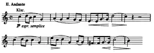 Замечательна своей простотой и изяществом. Напевную тему в духе колыбельной играют кларнеты и фаготы, а затем варьируют другие инструменты. Вариации прерывает появление новой темы, также у кларнета и фагота, но более экспрессивной, завершаемой загадочными аккордами. При повторении первой темы она дробится, разрабатывается. Только в новых вариациях в репризе возвращается первоначальное ни чем не омрачённое настроение. Но кода вновь полна страстных томлений и затаённых предчувствий.