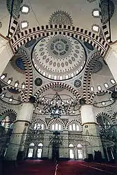 - Мечеть Шехзаде — первое из самых значительных архитектурных сооружений Мимара Синана. Возведена в историческом районе Фатих. Была начата как усыпальница для скончавшегося в 1543 году сына султана Сулеймана Великолепного Шехзаде Мехмеда (тур. şehzade — принц, наследник) и закончена в 1548 году. Имеет два минарета по 55 метров. Как и у многих построенных позже Синаном мечетей, у здания квадратное основание, на котором покоится большой центральный купол, окружённый четырьмя половинами куполов и многочисленными вспомогательными куполами меньшего размера. Массивные гранёные колонны, несущие купол, прорисованы очень чётко, структура сводов ярко выделена чередующейся темной и светлой клинчатой кладкой арок. Здесь расположены тюрбе Шехзаде Мехмеда, а также Рустема-паши и Мустафы Дестери-паши.