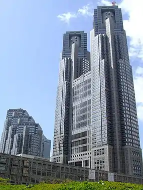 - Ниси-Синдзюку — самый большой квартал небоскребов Японии, среди которых выделяется новое здание муниципалитета Токио высотой 243 м. С 1991 года здание муниципалитета, спроектированное архитектором Кэндзо Тангэ, является символом Синдзюку. Со смотровой площадки небоскреба, расположенной на 45 этаже на высоте 202 метра, в ясную погоду можно увидеть даже Фудзияму. Вход бесплатный.