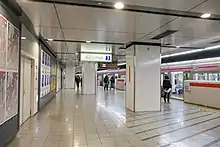 Две подземные платформы Линии Маруноути протянулись с востока на запад к северу от секций JR и Одакю, непосредственно под подземным торговым комплексом Metro Promenade.