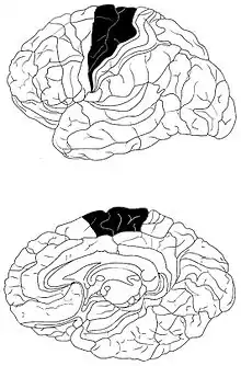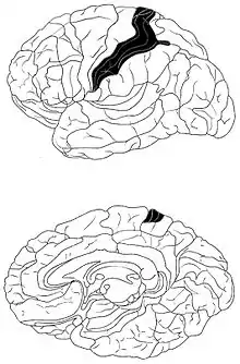 - раздражение нижних участков прецентральной извилины даёт парциальные припадки, начинающие в мышцах глотки, языка и нижней группы (оперкулярный синдром − syndromum operculare (лат.) − приступы жевательных или глотательных движений, облизывания губ, причмокивания)