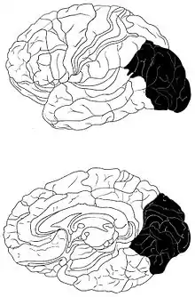 - верхнебоковую и нижнюю поверхности затылочной доли