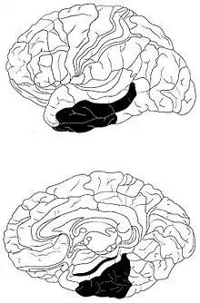 Гиппокампова извилина, аммонов рог, гиппокамп, крючок, извилины морского конька или 20, 21 и 35 поля, по Бродману