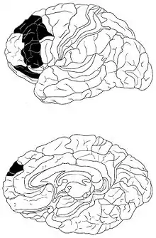 Возникает при поражении 9, 45, 46 и 47 полей по Бродману. Кардинальными симптомами этого синдрома являются расстройства психики в виде двух синдромов: