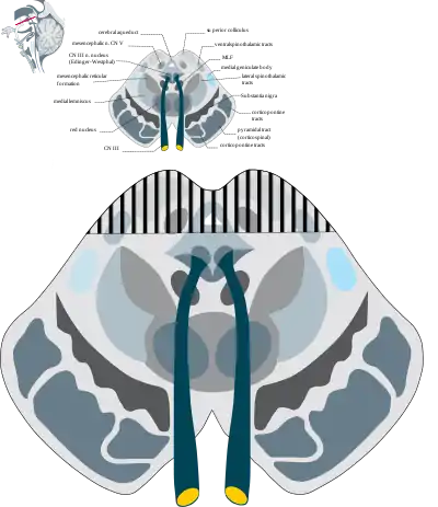 Тем не менее, любой другой вид сжатия, ишемии или повреждения этой области может повлечь за собой следующие нарушения: обструктивную гидроцефалию, кровоизлияния в средний мозг, церебральную артериовенозную мальформацию, травматологические и токсоплазмозные инфекции ствола мозга. Новообразования и гигантские аневризмы задней черепной ямки были также связаны с синдромом среднего мозга.