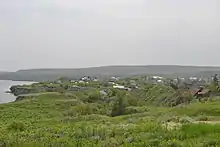 Если посмотреть с Волги на село, то голубое небо, отражаясь в воде, создаёт прибрежную синь, горизонт за селом — синий, холмы у воды от опоки фосфоритов обрисованы синью, даже отдельные остроги, спускающиеся вниз к селу, тоже оттесняются синевой.