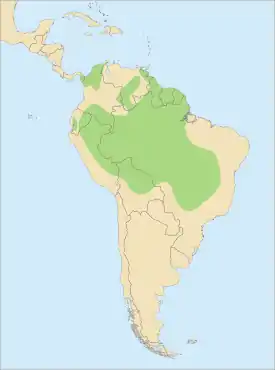 Гнездится от восточной части Панамы до Бразилии и Северного Парагвая. Предположительно, на Тринидаде эта птица вымерла.
