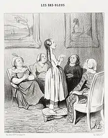 Во Франции в XVII веке в Париже тоже существовали салоны, в которых заметную роль играли женщины. И для них существовал собственный термин «учёные женщины» (фр. femmes savantes) по названию комедии Мольера «Учёные женщины»[6], высмеивающей «светских лжеученых педантов».