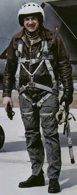 ![]() Шеф-пилот ОКБ Яковлева Андрей Синицын после очередного испытательного полёта на втором опытном образце Як-141 | |