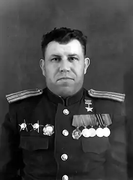 Командовал 3-м стрелковым батальоном 487-го стрелкового Краснознамённого полка 143-я стрелковая дивизия (47-я армия, 1-й Белорусский фронт). Звание — майор.