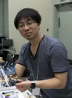 ![]() Макото Синкай в 2013 году в Москве отвечает на вопросы зрителей после показа фильма «Сад изящных слов» | |