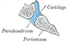 ![]() Распил затылочно-клиновидного синхондроза у ребёнка: синим цветом обозначен хрящ, соединение покрыто общей надкостницей. | |