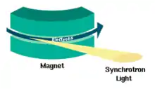 Синхротронное излучение — излучение электромагнитных волн релятивистскими заряженными частицами, движущимися по криволинейной траектории, то есть имеющими составляющую ускорения, перпендикулярную скорости. Синхротронное излучение создаётся в синхротронах, накопительных кольцах ускорителей, при движении заряженных частиц через ондулятор (последнее, вместе с другими случаями, когда частица движется в переменном магнитном поле, иногда выделяют в отдельный тип — ондуляторного излучения). Частота излучения может включать очень широкий спектральный диапазон, от радиоволн до рентгеновского излучения.