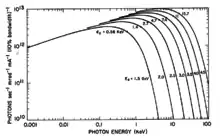 В случае электрона, за один оборот излучается энергия , где энергия измеряется в ГэВ, а радиус траектории — в метрах[4].