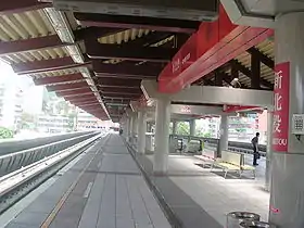 Станция «Синьбэйтоу» — эстакадная с островной платформой. На станции есть один выход, оснащенный эскалаторами. Также есть лифт для пожилых людей и инвалидов. На станции установлены автоматические платформенные ворота.