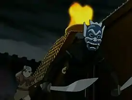 ![]() Синяя маска и Аанг сбегают из крепости | |||||
