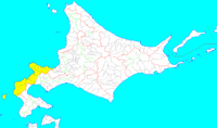 Провинция Сирибэси на карте Хоккайдо (выделена жёлтым).