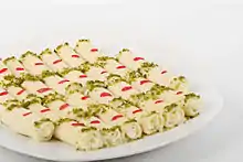 | Сувар ас-ситт (سوار الست "женский браслет") | Выпечка в форме диска, пропитанная медовым сиропом , в то время как центр покрыт измельченными фисташками |