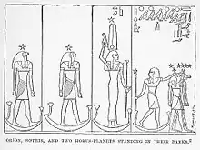 Многие древние культуры придавали особое значение звезде Сириус. Во времена Раннего царства жители долины реки Нил поклонялись ей как богине Сопдет (в греческой передаче Σῶθις, Сотис), небесному воплощению Исиды. Сириус часто изображали как Исиду, стоящую в небесной лодке, с пятиконечной звездой над головой, обращённую к стоящему справа Осирису (который, в свою очередь, ассоциировался со звёздами пояса Ориона). Кроме того, с Сириусом также связывалась богиня Хатхор, изображавшаяся в виде коровы, меж рогов которой обычно изображался Сириус в виде звезды. Египетские жрецы по наблюдениям гелиакического восхода Сириуса после его 70-дневного отсутствия на небосклоне точно предсказывали начало разлива Нила. Календарным годом в Древнем Египте считался период между двумя гелиакическими восходами Сириуса[17].