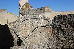 - На северной окраине древней части некрополя, на пологом кургане ранней эпохи. Эта могила выглядит архаично и скромно. Её выделяет обилие старых рогов архаров, привезённых сюда шыракшы (служителями места) и паломниками, и шест с некогда украшавшим его навершием (ту)[1][2].