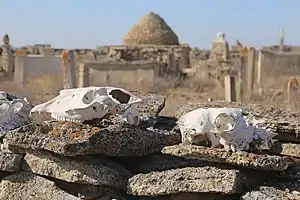 Ранняя часть некрополя в основном представлена малыми формами камнерезных мемориальных памятников: стелки, парные стелки, надгробия типа койтас, сандыктасы (ящики-саркофаги) и т. д. На северном кладбище встречаются также стелы-ферты. На многих из них высечены тамги средневековых огузо-туркменских племён: чоудор, тюгер, афшар, джебни, йомут (бага, джафарбай), баяндыр. Памятники нередко размещены небольшими участками, за исключением салырских надгробий. Возможно, средневековый некрополь формировался по двум принципам: максимального приближения к могиле Сисем-ата и небольшими кладбищами. На надгробиях этой части комплекса встречаются рельефные изображения сабель, реже перемётных сум и очень редко — арабографические эпитафии[1].